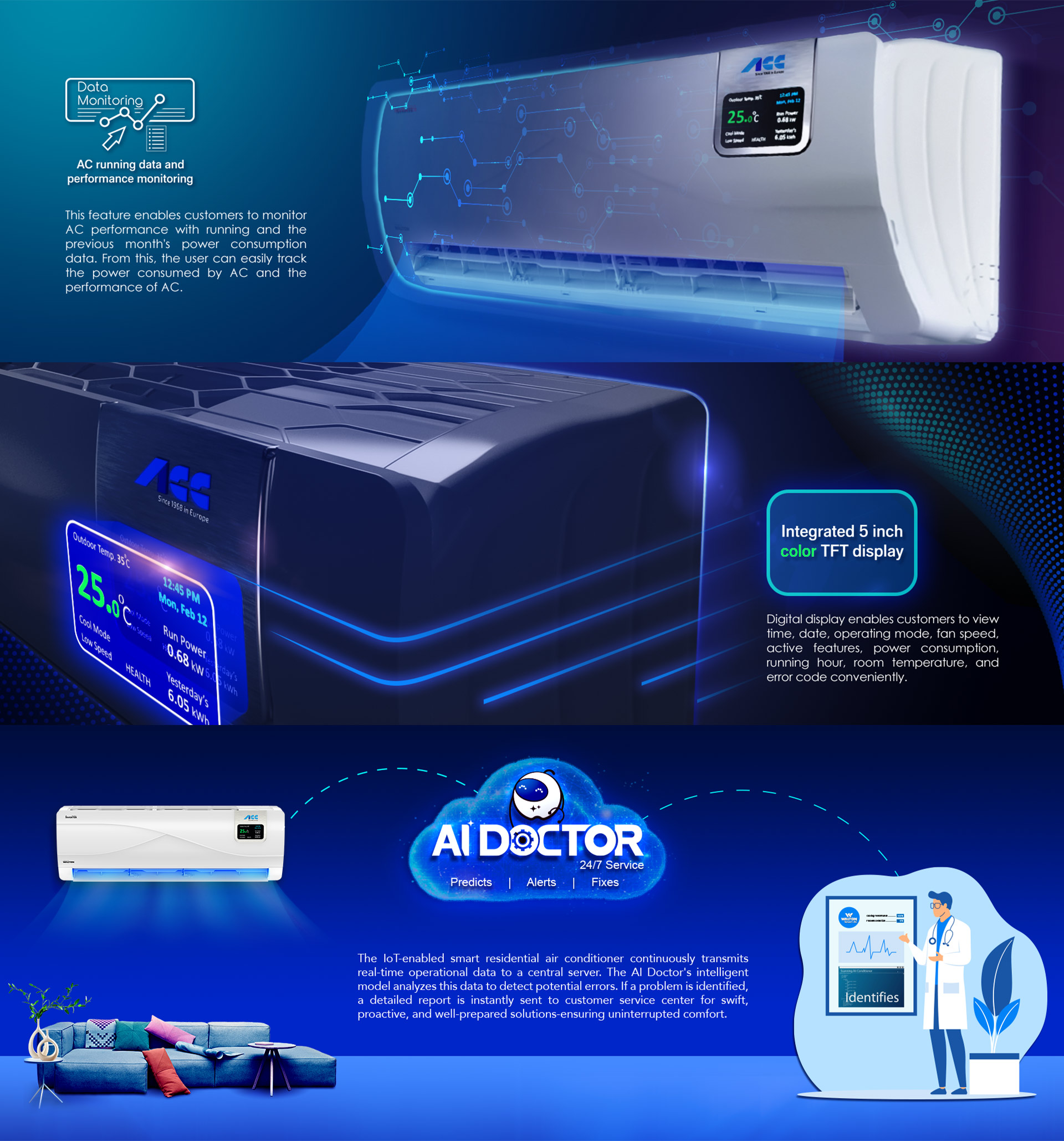 5. Effective from August 1, 2025, all inverter air conditioners will come with a 5-year inverter PCB warranty and a 2-year after-sales service warranty. For units purchased before August 1, 2025, a 3-year inverter PCB warranty and a 1-year after-sales service warranty will apply. However, from April 1, 2025 to July 31, 2025 a 5-year inverter PCB warranty will apply only to INVERNA, ACC, and MARLINE series.