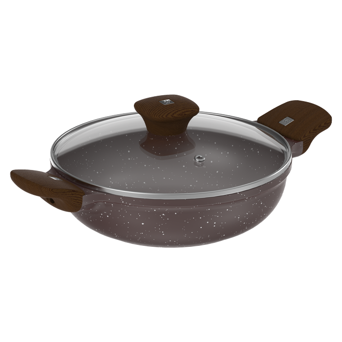 - Attractive Bakelite Handle and Glass lid Knob with Premium Soft Touch Wooden texture Finishing