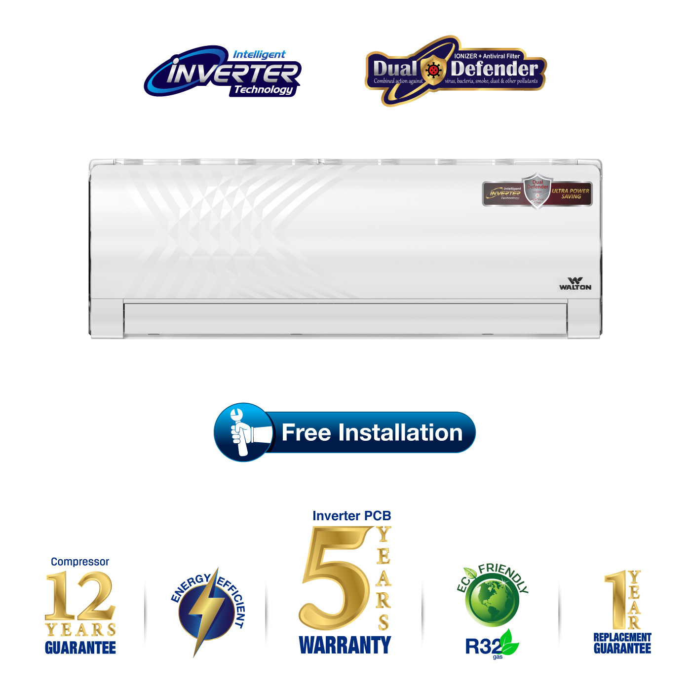 5. Effective from August 1, 2025, all inverter air conditioners will come with a 5-year inverter PCB warranty and a 2-year after-sales service warranty. For units purchased before August 1, 2025, a 3-year inverter PCB warranty and a 1-year after-sales service warranty will apply. However, from April 1, 2025 to July 31, 2025 a 5-year inverter PCB warranty will apply only to INVERNA, ACC, and MARLINE series.