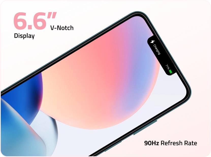 - Display: 6.6” V-Notch Display | 180Hz Touch Sampling Rate | 90Hz Refresh Rate