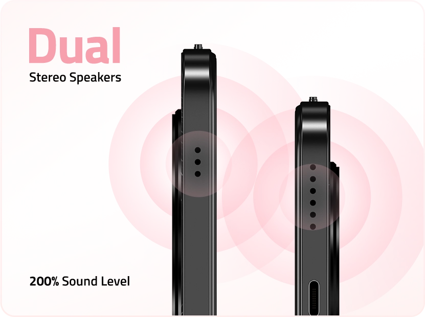 - Dual Stereo Speakers | 200% Sound Level